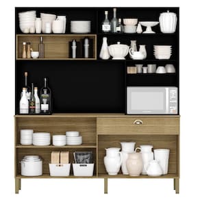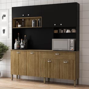 A Cozinha Compacta 8 Portas Mary K02 Freijó/Nero, da Mpozenato, vai ser ideal para auxiliar no preparo das refeições diárias, confira!