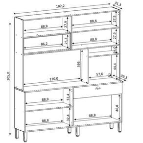 Uma Cozinha Compacta fabricada com materiais de alta qualidade possui 8 portas, uma gaveta, dobradiças e corrediças telescópicas 100% metálicas, prateleiras internas, passa fio adesivo, pés reguláveis em plástico resistente (polipropileno) e puxadores ergonômicos em plástico resistente (poliestireno), todos os processos de acabamento em pintura com secagem em luzes UV. Conta também com amplo espaço para Balcão de apoio de utensílios e micro-ondas, uma Cozinha Completa para auxiliar o preparo das suas refeições.