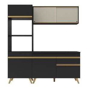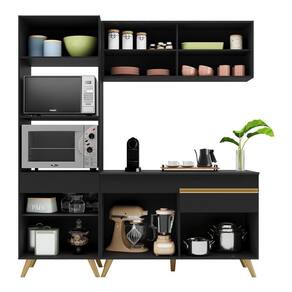 Armário De Cozinha Compacta 182cm Veneza Multimóveis V3695 Preto/dourado Preto/dourado