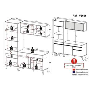 O Armário de Cozinha Compacta 182cm Veneza Multimóveis V3695 tem um excelente custo benefício e um amplo espaço interno. Produzido em MDP com acabamento acetinado (cerca de 20% de brilho), que garante maior durabilidade e resistência, possui corrediças metálicas (mais leveza no manuseio), pés retrô em polipropileno, que deixam o ambiente mais estiloso, puxadores em ABS e tampo em MDP 15mm com pintura de alta resistência. Os módulos são individuais e você pode montar da maneira que se adaptar melhor ao seu ambiente. O balcão possui tampo removível (compatível com pia de 120 cm). Para deixar sua cozinha mais bonita e organizada, possui módulo para forno e microondas, além de vidro reflecta e compartimento especial para utensílios mais altos.Conteúdo da Embalagem:1 (um) armário aéreo com portas de vidro 120cm1 (um) balcão com tampo 120cm1 (um) armário para forno e microondas 62cmDimensões do produto montado:Cozinha - Altura: 203cm | Largura: 182cm | Profundidade: 31cm (aéreo) - 53cm (paneleiro e balcão com tampo)*Você pode consultar as medidas internas na imagem técnica do produto.*As cores do produto podem sofrer variações de tonalidade de acordo com as configurações do seu dispositivo.Imagem meramente ilustrativa. Decoração e eletros não acompanham o produto.O produto será entregue desmontado e não disponibilizamos o serviço de montagem. Acabamento: Pintura Acetinada Texturizada | Cor: Preto/Dourado | Tonalidade: Preto | Material: MDP | Referência do Modelo: V3695 | Coleção: Veneza | Instruções de Cuidado: Limpar com pano seco para retirar o pó. Não utilizar lustra móveis e produtos químicos ou abrasivos à limpeza. | Sistema de Montagem: O produto acompanha manual de montagem e kit ferragem. O produto será entregue desmontado e não disponibilizamos o serviço de montagem. | Produto Composto por: 1 armário aéreo com portas de vidro 120 cm, 1 balcão com tampo 120 cm, 1 armário para forno e microondas 62 cm, manual de montagem e kit ferragem. | Altura Montado: 203 | Largura Montado: 182 | Profundidade Montado: 53 | Tamanho (L x A x P): 182 x 203 x 53 | Peso do Produto: 90 | Garantia do Fabricante: 3 | Fabricante: Multimóveis | Requer Montagem: Sim | Quantidade de Portas: 6 | Quantidade de Gavetas: 1 | Quantidade de Prateleiras: 6 | Quantidade de Puxadores: 5 | Quantidade de Pés: 9 | Porta com Vidro: Sim | Corrediça: Metálica | Material do Puxador: ABS | Material dos Pés: Polipropileno | Acompanha Pia Inox: Não | Balcão 120 cm compatível para uso de pia: Sim | Tampo Incluso: Sim | Quantidade de Tampos: 1 | Material do Tampo: MDP | Espessura do Tampo: 1.5 | Com Prateleiras: Sim | Produto: Cozinha Compacta | Tipo: Modular | Altura (cm): 203 cm | Largura (cm): 182 cm | Profundidade (cm): 53 cm | Estado de Origem: RS | Produto precisa de Montagem?: Sim, sugerimos a contratação do nosso serviço de montagem (para os CEPs em que o serviço está disponível) ou de algum profissional experiente de sua preferência | Ubicação do móvel: Não aplica | Altura do Produto com Embalagem: 37 | Largura do Produto com Embalagem: 57 | Comprimento do Produto com Embalagem: 188 | Peso do Produto com Embalagem: 90 | Nome do Produto no Fornecedor: Armário de Cozinha Compacta 182cm Veneza Multimóveis V3695 Preto/Dourado | Descrição do Tamanho: (L x A x P): 182 x 203 x 53 cm | Tempo de Garantia: 3 meses | Destaque 1: MDP com acabamento acetinado: maior durabilidade e resistência. | Destaque 2: Balcão com tampo removível. | Destaque 3: Corrediças metálicas (mais leveza no manuseio) e pés retrô em polipropileno: ambiente mais estiloso. | Destaque 4: Tamanho do Produto Montado (L x A x P): 182 x 203 x 53 cm | Destaque 5: Os módulos são individuais e você pode montar da maneira que se adaptar melhor ao seu ambiente. Garantia de 90 dias contra defeitos de fabricação. | Marca: Multimóveis | Acessórios incluídos: N/A Cor: Preto/Dourado