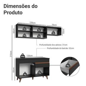 - 52 cm de profundidade no balcão e e 31 cm nos aéreos