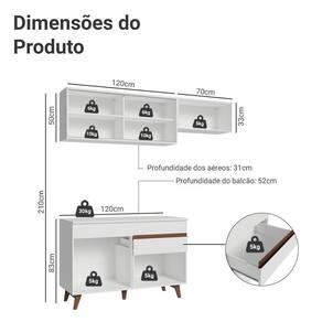- 52 cm de profundidade no balcão e e 31 cm nos aéreos