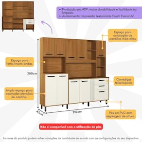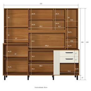 Dimensões do produto montado: Altura: 200cm | Largura: 210cm | Profundidade: 45cm *Você pode consultar as medidas detalhadas na imagem técnica do produto.