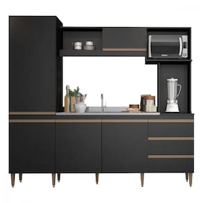 Armário De Cozinha Compacta 215x203cm Mdp 0318 Menu Móveis Preto A Cozinha Compacta e um movel util e versatil, perfeita para complementar o seu ambiente e facilitar nas tarefas do seu dia a dia. Dispoe de um design atual que facilita na hora de montar a decoracao, proporcionando um espaco mais aconchegante e organizado. Produzida com materiais de excelente qualidade, garantindo a sua durabilidade. O melhor em moveis no design atual aliando qualidade e otimos precos, so na Menu Moveis! Caracteristicas: Produzida em MDP de 15 mm Acabamento UV Texturizado Detalhe Travessa Flex Portas com Dobradicas Metalicas Gavetas com Corredicas Telescopicas Puxadores Perfil em ABS Pes Regulaveis em ABS NAO acompanha TAMPO e PIA