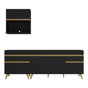 Armário De Cozinha Compacta 220cm Veneza Multimóveis V2075 Preto/dourado Preto/dourado
