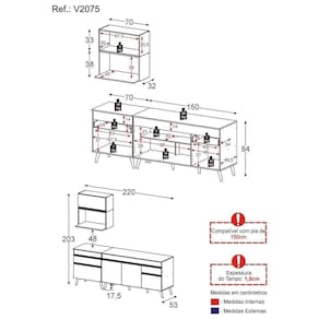 O Armário de Cozinha Compacta 220cm Veneza Multimóveis V2075 tem um excelente custo benefício e um amplo espaço interno. Produzido em MDP com acabamento acetinado (cerca de 20% de brilho), que garante maior durabilidade e resistência, possui corrediças metálicas (mais leveza no manuseio), pés retrô em polipropileno, que deixam o ambiente mais estiloso, puxadores em ABS e tampo em MDP 15mm com pintura de alta resistência. Esta cozinha conta com balcão com tampo removível (compatível com pia de 150 cm), com 1 gaveta e 3 portas e balcão para cooktop (o recorte do tampo deve ser realizado na hora da montagem conforme a medida do seu fogão) com 1 gaveta e 1 porta. Os módulos são individuais e você pode montar da maneira que se adaptar melhor ao seu ambiente. *Não acompanha pia de inox.Conteúdo da Embalagem:1 (um) armário aéreo 70cm1 (um) módulo para microondas1 (um) balcão com tampo 70cm1 (um) balcão com tampo 150cmDimensões do produto montado:Altura: 203cm | Largura: 220cm | Profundidade: 32cm (aéreos) - 53cm (balcão com tampo)*Você pode consultar as medidas internas na imagem técnica do produto.*As cores do produto podem sofrer variações de tonalidade de acordo com as configurações do seu dispositivo.Imagem meramente ilustrativa. Decoração e eletros não acompanham o produto.O produto será entregue desmontado e não disponibilizamos o serviço de montagem. Acabamento: Pintura Acetinada Texturizada | Cor: Preto/Dourado | Tonalidade: Preto | Material: MDP | Referência do Modelo: V2075 | Coleção: Veneza | Instruções de Cuidado: Limpar com pano seco para retirar o pó. Não utilizar lustra móveis e produtos químicos ou abrasivos à limpeza. | Sistema de Montagem: O produto acompanha manual de montagem e kit ferragem. O produto será entregue desmontado e não disponibilizamos o serviço de montagem. | Produto Composto por: 1 armário aéreo 70cm, 1 módulo para microondas, 1 balcão com tampo 70cm, 1 balcão com tampo 150cm, manual de montagem e kit ferragem. | Altura Montado: 203 | Largura Montado: 220 | Profundidade Montado: 53 | Tamanho (L x A x P): 220 x 203 x 53 | Peso do Produto: 73 | Garantia do Fabricante: 3 | Fabricante: Multimóveis | Requer Montagem: Sim | Quantidade de Portas: 5 | Quantidade de Gavetas: 2 | Quantidade de Prateleiras: 1 | Quantidade de Puxadores: 7 | Quantidade de Pés: 10 | Porta com Vidro: Não | Corrediça: Metálica | Material do Puxador: ABS | Material dos Pés: Polipropileno | Acompanha Pia Inox: Não | Balcão 120 cm compatível para uso de pia: Não | Tampo Incluso: Sim | Quantidade de Tampos: 2 | Material do Tampo: MDP | Espessura do Tampo: 1.5 | Com Prateleiras: Sim | Produto: Cozinha Compacta | Tipo: Modular | Altura (cm): 203 cm | Largura (cm): 220 cm | Profundidade (cm): 53 cm | Estado de Origem: RS | Produto precisa de Montagem?: Sim, sugerimos a contratação do nosso serviço de montagem (para os CEPs em que o serviço está disponível) ou de algum profissional experiente de sua preferência | Ubicação do móvel: Não aplica | Altura do Produto com Embalagem: 37 | Largura do Produto com Embalagem: 57 | Comprimento do Produto com Embalagem: 155 | Peso do Produto com Embalagem: 73 | Nome do Produto no Fornecedor: Armário de Cozinha Compacta 220cm Veneza Multimóveis V2075 Preto/Dourado | Descrição do Tamanho: (L x A x P): 220 x 203 x 53 cm | Tempo de Garantia: 3 meses | Destaque 1: MDP com acabamento acetinado: maior durabilidade e resistência. | Destaque 2: Balcão com tampo removível: pode ser utilizado com pia. | Destaque 3: Corrediças metálicas (mais leveza no manuseio) e pés retrô em polipropileno: ambiente mais estiloso. | Destaque 4: Tamanho do Produto Montado (L x A x P): 220 x 203 x 53 cm | Destaque 5: Os módulos são individuais e você pode montar da maneira que se adaptar melhor ao seu ambiente. Garantia de 90 dias contra defeitos de fabricação. | Marca: Multimóveis | Acessórios incluídos: N/A Cor: Preto/Dourado