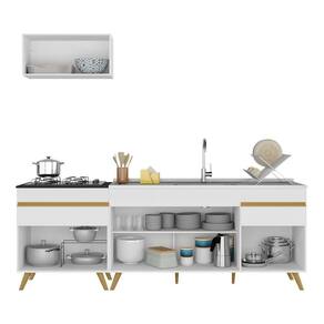 Armário De Cozinha Compacta 220cm Veneza Multimóveis V2074 Branco/dourado Branco/dourado