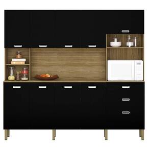 Com um lindo design e ótimo espaço a Cozinha Compacta 10 Portas 2 Gavetas Intensa K02 Freijó/Nero, da Mpozenato, será uma aliada no preparo de suas refeições!