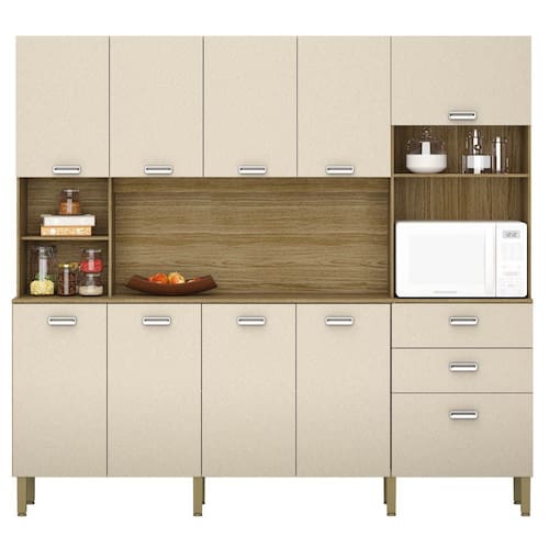 Com um lindo design e ótimo espaço a Cozinha Compacta 10 Portas 2 Gavetas Intensa K02 Freijó/Vanilla, da Mpozenato, será uma aliada no preparo de suas refeições!