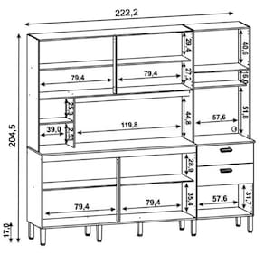 Uma Cozinha Prática, que conta com 3 nichos decorativos permitindo personalizar a decoração da cozinha e guardar itens do dia a dia, deixando o ambiente ainda mais bonito e funcional. Não podemos esquecer do nicho para forno elétrico ou micro-ondas, com um espaço amplo para garantir a praticidade na hora de cozinhar e utilizar no dia a dia. A Cozinha com Gaveta tem corrediças telescópicas são um verdadeiro show à parte, proporcionando um deslize suave e sem esforço, sem contar que são super espaçosas e garantem a organização dos utensílios da cozinha. Os pés com regulagem, os puxadores em plástico com pintura inox e as portas em 15 mm de espessura garantem resistência e durabilidade, além de um design moderno e sofisticado.