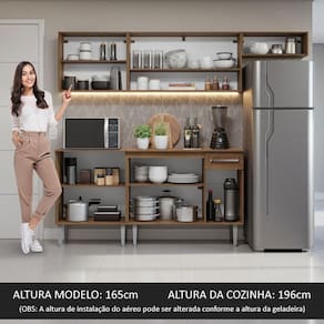 Qualidade duradoura e ótimo custo-benefício: A cozinha possui fabricação com materiais de alta qualidade. Suas corrediças e dobradiças metálicas, puxadores com alumínio e pés reguláveis em PVC garantem maior durabilidade e resistência.