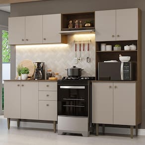 Armário de Cozinha Compacta 235cm Rustic/Crema Gourmet Madesa 01 - Bege