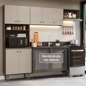 Com amplo espaço interno, este armário é perfeito para organizar utensílios de cozinha, louças e eletros. Além disso, oferece um compartimento ideal para forno ou micro-ondas.