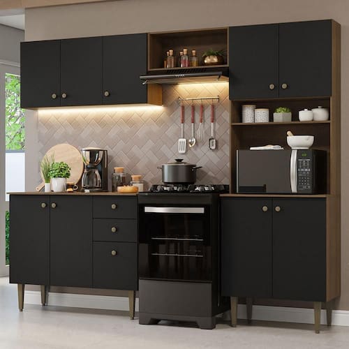 Mais organização na sua cozinha: Ótimo espaço para organizar utensílios, louças e eletros, inclusive espaço para forno ou micro-ondas.