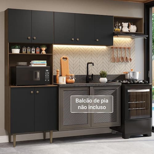 Armário De Cozinha Compacta 235cm Rustic/preto Gourmet Madesa Xa03 Rustic/preto