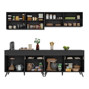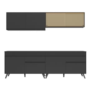 Armário De Cozinha Compacta 240cm Veneza Multimóveis V3696 Preto Preto