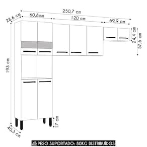 O Armário de Cozinha Compacta 251cm Louis Plus Mpozenato foi pensado para otimizar o espaço, unindo funcionalidade e um design moderno que valoriza sua Cozinha.