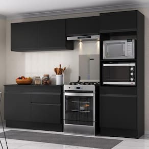 Dimensões do produto montado: Cozinha - Altura: 203cm | Largura: 252cm | Profundidade: 53cm Espaço para Fogão/Geladeira - Altura: 170cm | Largura: 70cm *Você pode consultar as medidas internas na imagem técnica do produto.