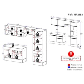 Conteúdo da Embalagem: 1 (um) Armário Aéreo com Porta Basculante 70cm 1 (um) Armário Aéreo 120cm 1 (um) Balcão com Tampo 120cm 1 (um) Armário para Forno e Micro-Ondas 62cm
