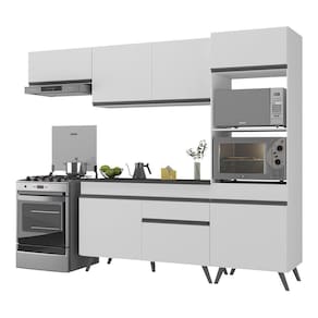 Conteúdo da Embalagem: 1 (um) armário aéreo 70cm 1 (um) armário aéreo 120cm 1 (um) balcão com tampo 120cm 1 (um) armário para forno e microondas 62cm