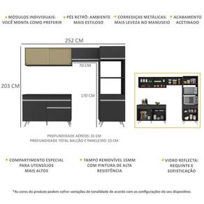 Cozinha - Altura: 203cm | Largura: 252cm | Profundidade: 31cm (aéreos) - 53cm (paneleiro e balcão com tampo)