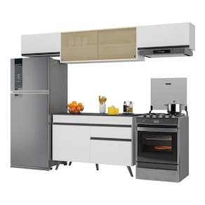 A Cozinha Compacta 4 peças com Armário e Balcão MP3698 Veneza Multimóveis tem um excelente custo benefício e um amplo espaço interno. Produzida em MDP com acabamento acetinado (cerca de 20% de brilho), que garante maior durabilidade e resistência, possui corrediças metálicas (mais leveza no manuseio), pés retrô em polipropileno, que deixam o ambiente mais estiloso, puxadores em ABS e tampo em MDP 15mm com pintura de alta resistência. Os módulos são individuais e você pode montar da maneira que se adaptar melhor ao seu ambiente. O balcão possui tampo removível (compatível com pia de 120 cm). Para deixar sua cozinha mais bonita e organizada, possui vidro reflecta e compartimento especial para utensílios mais altos.