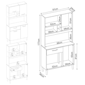 Dimensões do produto montado: Altura: 177cm | Largura: 91cm | Profundidade: 36cm *Você pode consultar as medidas detalhadas na imagem técnica do produto.