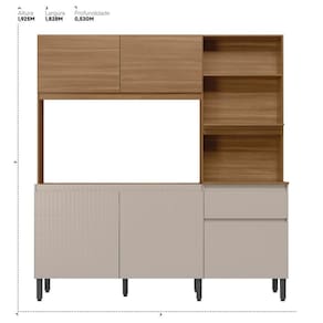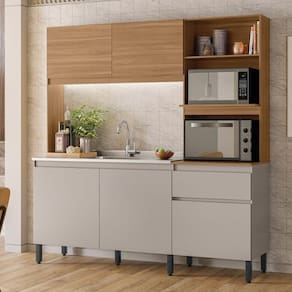 A Cozinha Compacta Naves é ideal para otimizar espaços reduzidos, oferecendo praticidade e organização. O balcão oferece um amplo armazenamento, enquanto o armário aéreo acomoda louças e eletroportáteis de forma eficiente. Conta também com nichos para micro-ondas e forno elétrico, além de gavetas para utensílios, facilitando o dia a dia. Fabricada com acabamento prime TX e pés reguláveis, garante durabilidade e estabilidade. Transforme sua cozinha em um espaço mais funcional e bonito com a Cozinha Naves!