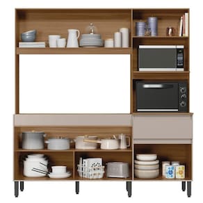 Armário De Cozinha Compacta 5 Portas 1 Gaveta Naves - Amêndola Touch-nude Prime Tx - Marrom
