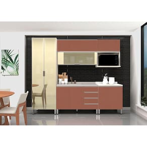 Uma cozinha modulada completa, para deixar seu ambiente super aconchegante e requintado. Composta por 6 peças cuidadosamente pensadas para sua organização. Os módulos são montados individualmente e permite a instalação da forma que melhor se adeque ao seu espaço. Contém um nicho com espaço para forno micro-ondas e vidros reflecta. Para este ambiente utilizamos como proposta de parede Linear: 260cm