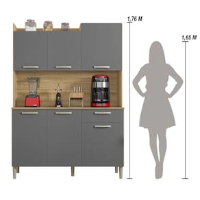 Armário de Cozinha Compacta 6 Portas 1 Gaveta Gênova - Cinza