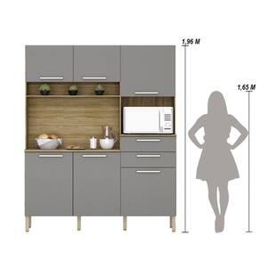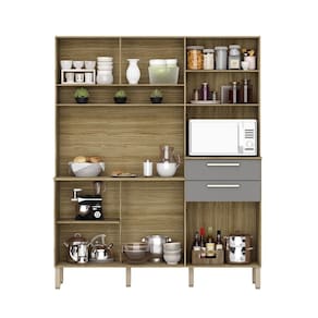 Conta com nicho para pequenos objetos, além disso, tem nicho para micro-ondas e passa-fio no traseiro facilitando o acesso à tomada na parede. O espaço interno é bem dividido com a utilização de prateleiras, para melhor organizar os utensílios da cozinha.