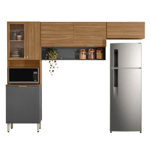 DIFERENCIAIS: Paneleiro com vidro / Nicho com espaço para micro-ondas / Pistão a gás / Pés reguláveis / Acabamento Prime TX / Acabamento Touch