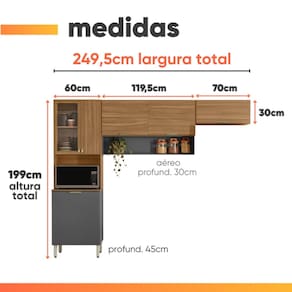 A = 70 cm / L = 119,5 cm / P = 30 cm (Armário Aéreo)