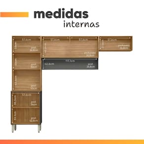 A = 21,8 cm / L = 117,1 cm / P = 30 cm (Armário Aéreo)