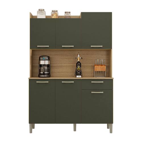 Armário de Cozinha Compacta 6 Portas e 1 Gaveta 121cm Florença Freijó Real - Pallazio - Verde