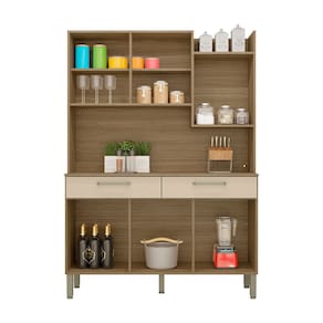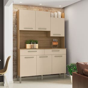 Armário de Cozinha Compacta 6 Portas e 2 Gavetas 132cm Silver Freijó/Vanilla - Pallazio - Bege Claro