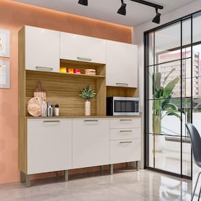 As 6 portas proporcionam um espaço generoso para armazenar utensílios de cozinha, eletrodomésticos e alimentos, enquanto as 2 gavetas são perfeitas para guardar talheres, panos de prato e outros pequenos itens. Essa combinação garante uma cozinha sempre arrumada e prática, facilitando o seu dia a dia.