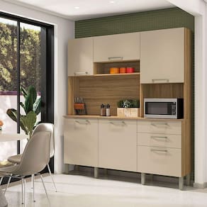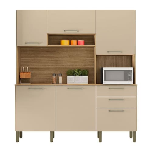 O Armário de Cozinha Compacta Dali é a escolha ideal para quem deseja praticidade e beleza no ambiente. Com 180 cm de largura, ele oferece uma ótima solução de armazenamento com suas 6 portas e 2 gavetas, permitindo organizar pratos, copos, panelas e mantimentos de forma eficiente e acessível.