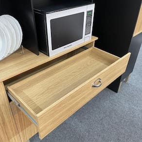 O segundo nicho, posicionado acima do micro-ondas ou forno elétrico, é ideal para decoração ou armazenamento de utensílios e temperos.