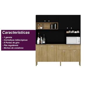 Material: MDP | Cor: Freijó/Supremo | Cômodo Indicado: Cozinha | Dimensões do Produto (A X L X P): 205 x 182 x 39 | Possui Prateleira: Sim | Possui Gaveta: Sim | Tipo da Corrediça da Gaveta: Telescópicas | Possui portas: Sim | Quantidade de portas: 8 Portas | Tipo de Porta: Bater | Possui porta Basculante: Não | Possui Pistão á Gás: Não | Possui Nichos: Sim | Possui pés: Sim | Possui Vidro: Não | Quantidade de Vidros: 0 | Peso do Produto (Kg): 76.55 | Altura do Produto (cm): 205 | Largura do Produto (cm): 182 | Comprimento do Produto (cm): 39 | Nome do Simples no Fornecedor: Core | Garantia do Fabricante: 90 dias | Instruções/Cuidados: Evite contato com líquidos. Nada de lavar os móveis. Móveis não gostam de umidade. Não deixe o móvel exposto ao sol. Os acessórios também precisam de limpeza. | Produto precisa de Montagem?: Sim, a montagem é simples mas sugerimos a contratação de algum profissional experiente de sua preferência | Material para Filtro: MDP | Material da Estrutura: MDP | Necessita Fixação na Parede: Não | Conteúdo Embalagem: Cozinha Compacta Core | Origem: Nacional | Estado de Origem: Paraná | Quantidade de Volumes: 3 | Peso Bruto (volume 01): 43,1 Kg | Comprimento x Largura x Altura (volume 01): 187 x 70 x 6 | Peso Bruto (volume 02): 34,4 Kg | Comprimento x Largura x Altura (volume 02): 129 x 60 x 91 | Peso Bruto (volume 03): 1,6 Kg | Comprimento x Largura x Altura (volume 03): 40 x 35 x 5 Cor: Freijó/Nero