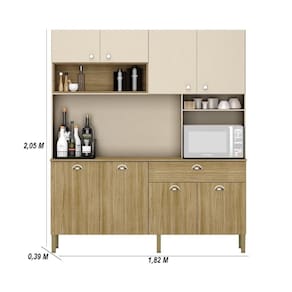 Com suas dimensões espaçosas de 205,0 cm de altura, 182 cm de largura e 39 cm de profundidade, esta cozinha oferece funcionalidade e praticidade.