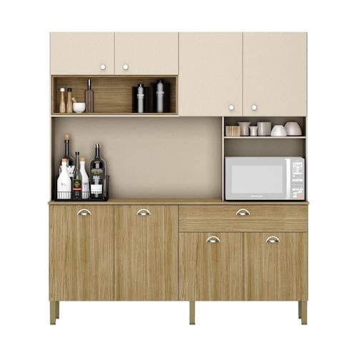 O segundo nicho, posicionado acima do micro-ondas ou forno elétrico, é ideal para decoração ou armazenamento de utensílios e temperos.