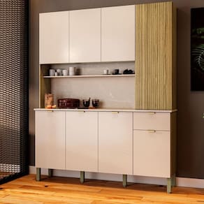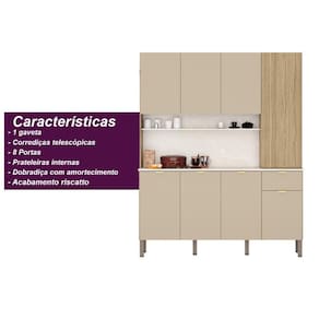 Material: MDP | Cor: Freijó/Vanilla/Riscatto Freijó | Cômodo Indicado: Cozinha | Dimensões do Produto (A X L X P): 200 x 161 x 38,8 | Possui Prateleira: Sim | Possui Gaveta: Sim | Tipo da Corrediça da Gaveta: Telescópicas | Possui portas: Sim | Quantidade de portas: 8 Portas | Tipo de Porta: Bater | Possui porta Basculante: Não | Possui Pistão á Gás: Não | Possui Nichos: Sim | Possui pés: Sim | Possui Vidro: Não | Quantidade de Vidros: 0 | Peso do Produto (Kg): 71.8 | Altura do Produto (cm): 200 | Largura do Produto (cm): 161 | Comnto do Produto (cm): 38.799999999999997 | Nome do Simples no Fornecedor: Slow | Garantia do Fabricante: 90 dias | Instruções/Cuidados: Evite contato com líquidos. Nada de lavar os móveis. Móveis não gostam de umidade. Não deixe o móvel exposto ao sol. Os acessórios também precisam de limpeza. | Produto precisa de Montagem?: Sim, a montagem é simples mas sugerimos a contratação de algum experiente de sua preferência | Material para Filtro: MDP | Material da Estrutura: MDP | Necessita Fixação na Parede: Não | Conteúdo Embalagem: Cozinha Compacta Ferrara | Origem: Nacional | Estado de Origem: Paraná | Quantidade de Volumes: 3 | Peso Bruto (volume 01): 38,3 KG | Comnto x Largura x Altura (volume 01): 166 x 40 x 10 | Peso Bruto (volume 02): 33,1 KG | Comnto x Largura x Altura (volume 02): 125 x 68 x 7 | Peso Bruto (volume 03): 2,2 KG | Comnto x Largura x Altura (volume 03): 42 x 38 x 5