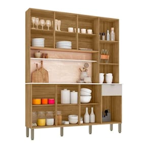 Com suas 8 portas, o armário Dacar permite uma distribuição organizada de pratos, copos, panelas e demais itens, enquanto a gaveta é ideal para guardar talheres e outros objetos pequenos. Essa configuração facilita o acesso rápido ao que você precisa, tornando o preparo das suas refeições mais ágil e prazeroso.
