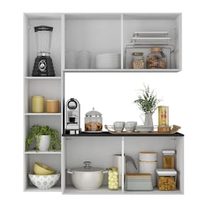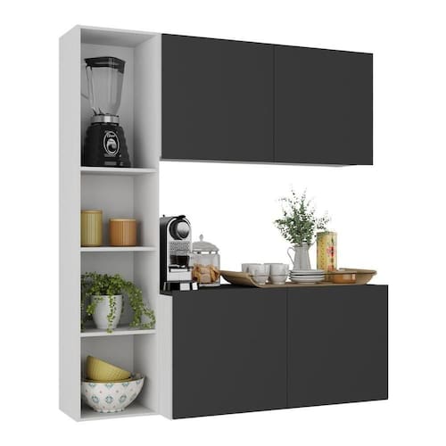 Armário De Cozinha Compacta Com Balcão Linea Fit 4 Portas Multimóveis Mp2218 Branco/preto Branco/preto O Armário de Cozinha Compacta com Balcão Linea Fit 4 Portas Multimóveis MP2218 é a solução ideal para otimizar o espaço da sua cozinha. Produzido em MDP com acabamento acetinado (cerca de 20% de brilho), que confere durabilidade e resistência, possui 4 portas com dobradiças metálicas e amplo espaço interno, nichos (suportam até 3kg) para acomodar os itens mais utilizados no dia a dia e espaço para colocação de utensílios mais altos. O design moderno e elegante das portas passantes dispensa a utilização de puxadores. Além disso, o balcão acompanha tampo de 15mm que suporta até 12kg, ótimo para acomodar objetos de cozinha ou servir de apoio na hora de preparar suas receitas. Suspensa, esta cozinha permite a sua montagem na altura desejada, além de facilitar a limpeza do ambiente. O balcão NÃO é indicado para utilização de pia. Conteúdo da Embalagem: 1 (uma) Cozinha Manual de Montagem Kit Ferragem