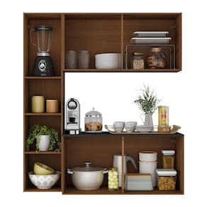 Armário De Cozinha Compacta Com Balcão Linea Fit 4 Portas Multimóveis Mp2218 Carvalho Avelã/preto Carvalho Avelã/preto O Armário de Cozinha Compacta com Balcão Linea Fit 4 Portas Multimóveis MP2218 é a solução ideal para otimizar o espaço da sua cozinha. Produzido em MDP com acabamento acetinado (cerca de 20% de brilho), que confere durabilidade e resistência, possui 4 portas com dobradiças metálicas e amplo espaço interno, nichos (suportam até 3kg) para acomodar os itens mais utilizados no dia a dia e espaço para colocação de utensílios mais altos. O design moderno e elegante das portas passantes dispensa a utilização de puxadores. Além disso, o balcão acompanha tampo de 15mm que suporta até 12kg, ótimo para acomodar objetos de cozinha ou servir de apoio na hora de preparar suas receitas. Suspensa, esta cozinha permite a sua montagem na altura desejada, além de facilitar a limpeza do ambiente. O balcão NÃO é indicado para utilização de pia. Conteúdo da Embalagem: 1 (uma) Cozinha Manual de Montagem Kit Ferragem