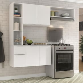Armário De Cozinha Compacta Com Balcão Sofia Multimóveis V2001 - Branco Branco O Armário de Cozinha Compacta com Balcão Sofia Multimóveis tem um excelente custo benefício e é ideal para espaços compactos. Produzida em MDP com acabamento acetinado (cerca de 20% de brilho), que garante maior durabilidade e resistência, possui uma gaveta com corrediças metálicas (mais leveza no manuseio), puxadores em ABS e tampo em MDP 15mm com pintura de alta resistência. Este modelo de balcão não é indicado para utilização de pia. Por ser um modelo de cozinha suspensa (não acompanha pés), você pode ajustar a altura dela para encaixar a geladeira e/ou fogão conforme sua necessidade e o nicho aéreo é individual, ou seja, você pode montar de ambos os lados. Conteúdo da Embalagem: 1 (um) armário com balcão e nicho