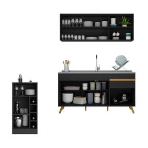 Dimensões do produto montado: Cozinha - Altura: 203cm | Largura: 150cm | Profundidade: 53cm Bancada/Mesa - Altura: 91,5cm | Largura: 137cm | Profundidade: 45cm *Você pode consultar as medidas detalhadas na imagem técnica do produto.