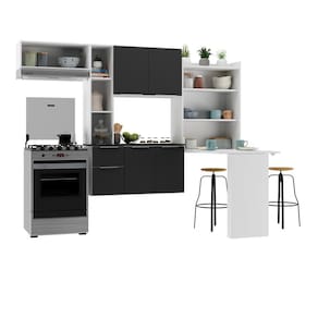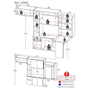 Dimensões do produto montado: Cozinha - Altura: 138cm | Largura: 152cm | Profundidade: 30cm (aéreos) - 38cm (balcão com tampo) Mesa Dobrável (aberta) - Altura: 163,5cm | Largura: 63cm | Profundidade: 107cmEspaço para fogão/geladeira - Altura: ajustável - Largura: 62cm *Você pode consultar as medidas internas na imagem técnica do produto.